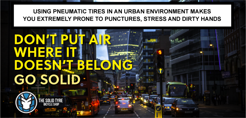 The Solid Tire bicycle shop brings the future to cycling with the most advanced solid bicycle tires in the world by TANNUS. Solid Bicycle tires turn your bicycle into a reliable puncture free machine without annoying pneumatic punctures, patch kits and pumps. Tannus is ideal for commuting, road training, touring, and all cycling in general. No more pumps, tubes, patches or headaches.